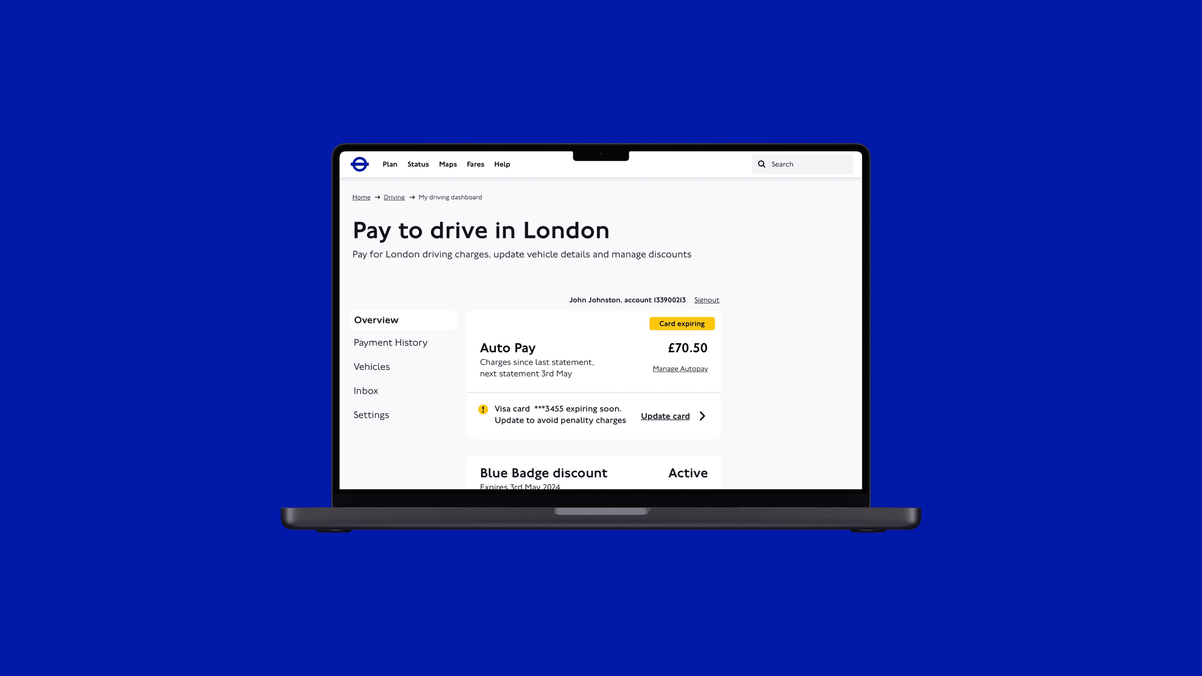 At Transport for London, I re designed the way an account dashboard works to help drivers and businesses to better understand and manage their account, payments and discounts. I learnt about how to deliver value in public sector projects.